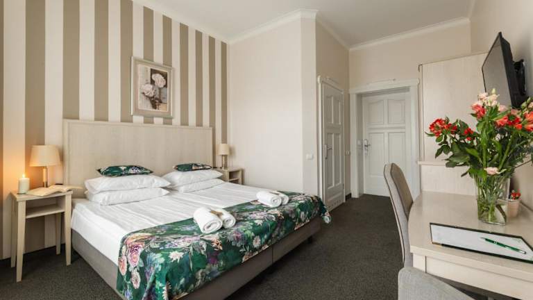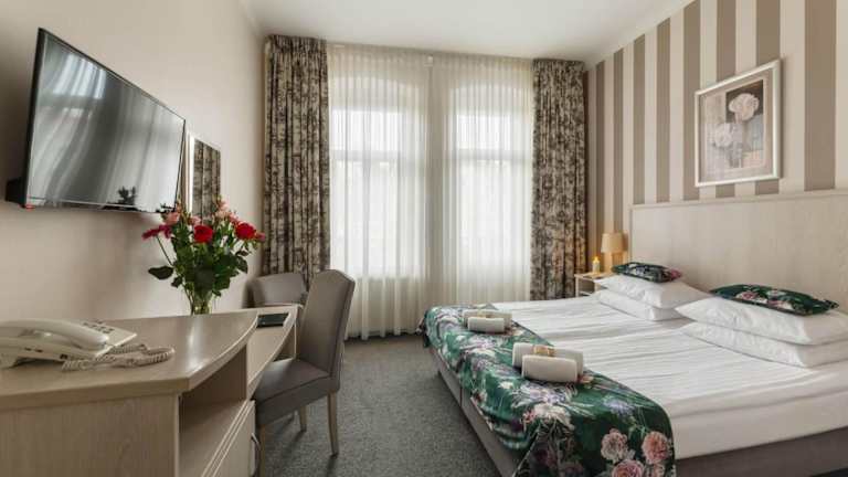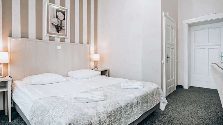 Das Hotel Amalia liegt im Kurort Kudowa-Zdrój, nur wenige Schritte vom Kurpark entfernt. Die Lage am Fuße des Nationalparks Tafelberg bietet eine malerische Kulisse und die Möglichkeit, die Natur zu erkunden. In der Umgebung gibt es zahlreiche Wander- und Radwege, die zu interessanten Orten führen. Das Skigebiet Zieleniec ist ebenfalls leicht zu erreichen und bietet Wintersportmöglichkeiten für alle Altersgruppen. Die tschechische Grenze ist nur 900 m entfernt, so dass Sie auch einen Ausflug ins Nachbarland unternehmen können.