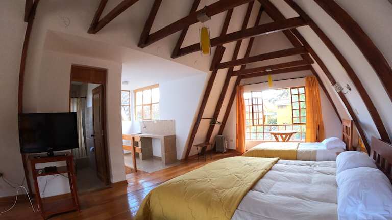 Die Zimmer im Amaru Valle Hotel sind geräumig und bieten viel Platz zum Entspannen. Die Chalets sind mit schönen Holzböden, großen Fenstern und Designelementen wie Deckenbalken ausgestattet. Jedes Zimmer verfügt über einen gemütlichen Sitzbereich und ein eigenes Badezimmer. Einige Zimmer haben sogar einen Kamin oder einen Balkon, um den Gästen zusätzlichen Komfort zu bieten.