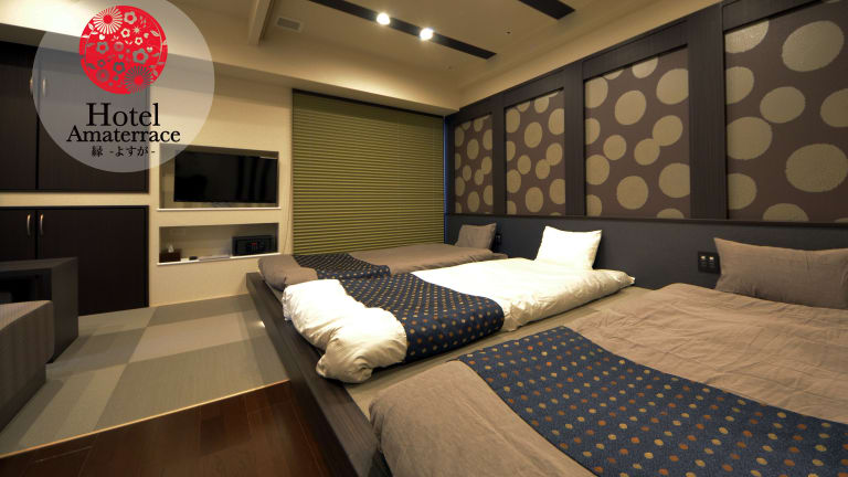 Die klimatisierten Zimmer im Hotel Amaterrace Yosuga sind komfortabel eingerichtet und verfügen über Annehmlichkeiten wie einen Kühlschrank, eine Mikrowelle, einen Wasserkocher und kostenfreie Pflegeprodukte. Ein Schreibtisch und kostenfreies WLAN sind ebenfalls vorhanden. Die Zimmer sind mit einem eigenen Bad ausgestattet, das eine Dusche, eine Badewanne und einen Haartrockner bietet. Bettwäsche und Handtücher werden gestellt, um den Aufenthalt der Gäste so angenehm wie möglich zu gestalten.