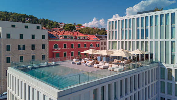 Das Hotel Ambasador liegt im Stadtteil Marjan, nur 1,5 km vom Strand Jezinac entfernt. Es bietet eine günstige Lage, um die verschiedenen Sehenswürdigkeiten von Split zu erkunden. Beliebte Attraktionen wie der Diokletianpalast, der Strand Bacvice und Obojena Svjetlost sind in der Nähe. Der Flughafen Split ist nur 25 km entfernt, so dass Sie bequem an- und abreisen können.