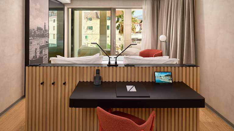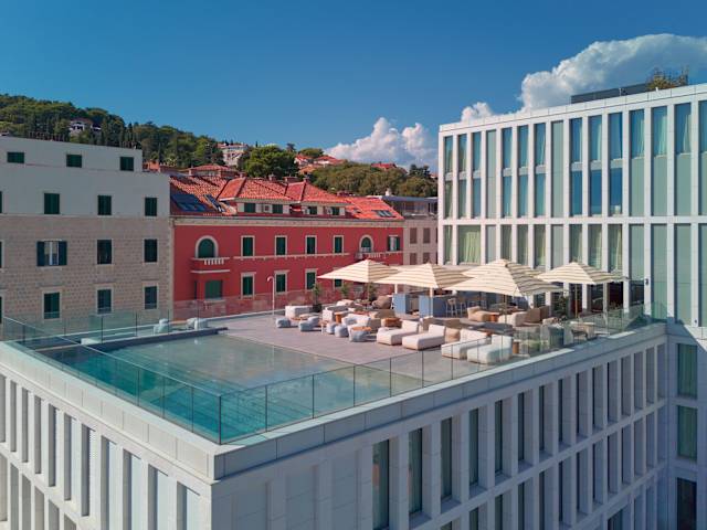 Das Hotel Ambasador in Split ist die ideale Wahl für Ihren Aufenthalt in dieser schönen Stadt. Es bietet eine erstklassige Lage im Stadtteil Marjan, in der Nähe von Stränden, Sehenswürdigkeiten und dem Diokletianpalast. Das Hotel verfügt über komfortable Zimmer mit modernen Annehmlichkeiten wie Klimaanlage, Minibar und Flachbild-TV. Genießen Sie ein köstliches Frühstück und entspannen Sie sich im Fitnesscenter, der Sauna oder auf der Terrasse. Das freundliche Personal steht Ihnen rund um die Uhr zur Verfügung, um Ihren Aufenthalt so angenehm wie möglich zu gestalten.