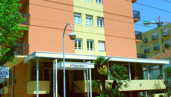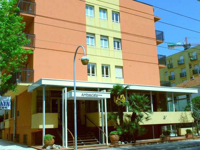 Das Hotel Ambasciata in Riccione bietet seinen Gästen eine ideale Lage nur wenige Schritte vom Strand entfernt. Die klassisch eingerichteten Zimmer mit Balkon und kostenfreiem WLAN sorgen für einen angenehmen Aufenthalt. Das täglich servierte Frühstück mit süßen und herzhaften Speisen ist ein guter Start in den Tag. Zusätzlich profitieren Gäste von Ermäßigungen für den Eintritt zum Partnerstrand. Die Nähe zum Zentrum von Riccione und dem Bahnhof ermöglicht eine bequeme Erkundung der Umgebung.