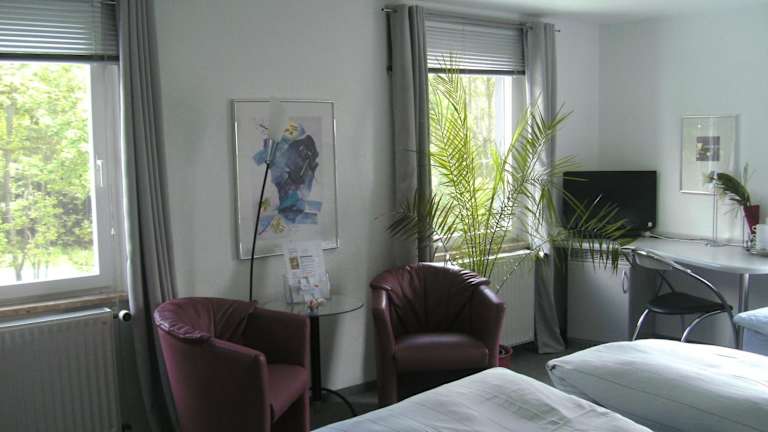 Das Hotel Ambiente liegt in einer grünen Umgebung am Stadtrand von Hof. Hier können Sie die Ruhe und Natur genießen, während Sie dennoch in der Nähe des Stadtzentrums sind. Die Umgebung bietet Möglichkeiten zum Wandern und Erkunden der Natur.