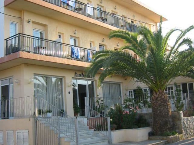Das Hotel verfügt über insgesamt 26 Zimmer, die eine komfortable Unterkunft bieten. Jedes Zimmer verfügt über einen Wohnbereich, ein Badezimmer, eine Klimaanlage und einen Balkon oder eine Terrasse mit Meerblick. Zur Ausstattung gehören auch ein Doppelbett, eine Kochnische, ein Kühlschrank, ein Minikühlschrank, ein Fernseher und kostenfreies WLAN. Im Badezimmer finden Sie eine Dusche oder eine Badewanne.