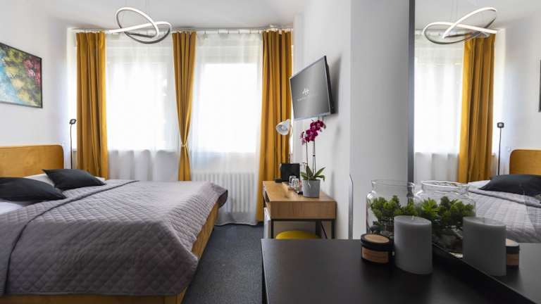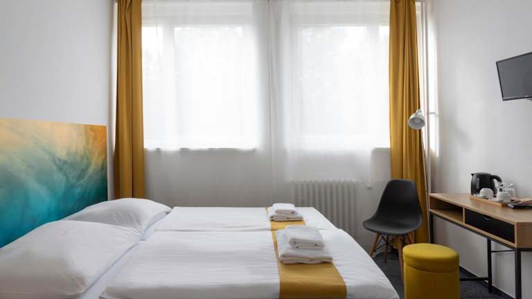 Das Hotel ATLAS bietet komfortable Zimmer mit moderner Ausstattung. Jedes Zimmer verfügt über einen Schreibtisch, einen Flachbild-TV und ein eigenes Bad. Die Zimmer sind gemütlich eingerichtet und bieten alles, was Sie für einen angenehmen Aufenthalt benötigen. Bettwäsche und Handtücher werden gestellt und ein Kleiderschrank ist ebenfalls vorhanden.