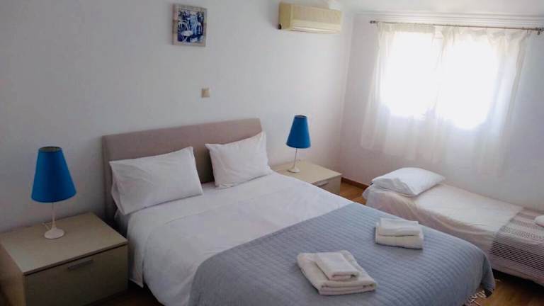 Die Villa Ampelaki bietet Platz für bis zu 7 Personen und verfügt über 3 gemütliche Schlafzimmer. Es gibt 2 Doppelzimmer, eines davon mit einem Zustellbett, ein Zimmer mit einem Einzelbett und ein Zimmer mit 2 Schlafsofas. Das Ferienhaus ist mit einer voll ausgestatteten Küche ausgestattet, in der Sie Ihre eigenen Mahlzeiten zubereiten können. Handtücher und Bettwäsche werden Ihnen zur Verfügung gestellt, damit Sie sich während Ihres Aufenthalts wie zu Hause fühlen können. Die beiden Badezimmer sind mit einer Badewanne und einem Bidet ausgestattet.