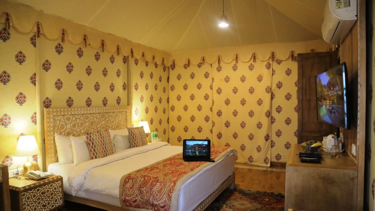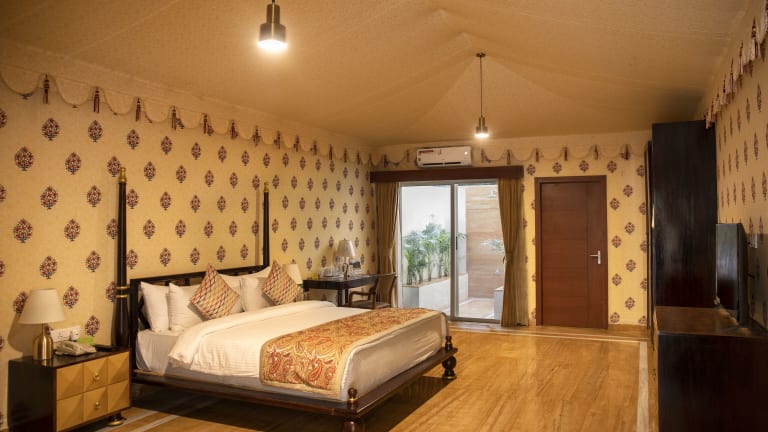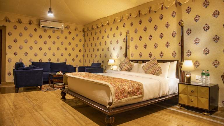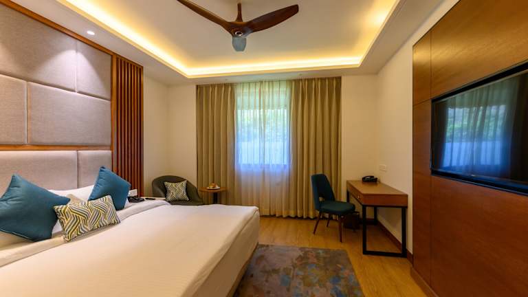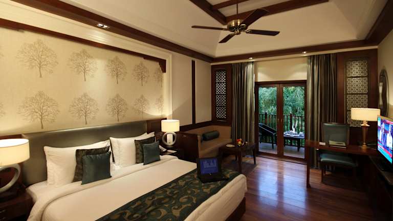 Die Zimmer im Ananta Spa & Resort sind modern und komfortabel eingerichtet und bieten einen eigenen Balkon mit Blick auf den Garten oder die Aravallihügel. Die Zimmer verfügen über Holzböden, Klimaanlage und einen Deckenventilator für angenehme Temperaturen. Jedes Zimmer hat ein eigenes Bad mit Dusche sowie einen Flachbild-TV und eine Minibar für zusätzlichen Komfort.
