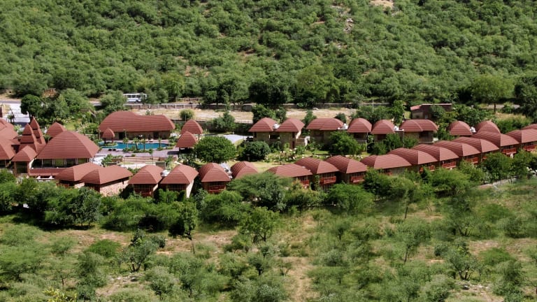 Das Ananta Spa & Resort in Pushkar ist ein luxuriöses Spa-Resort, das mit seinen erstklassigen Einrichtungen und dem atemberaubenden Blick auf den Garten und die Aravallihügel einen unvergesslichen Aufenthalt bietet. Genießen Sie Entspannung im Spa, trainieren Sie im Fitnesscenter und gönnen Sie sich erfrischende Getränke an der Poolbar. Das Resort bietet auch kostenfreies WLAN und Parkplätze sowie einen zuvorkommenden Zimmerservice und ein Restaurant, das Frühstück, Mittag- und Abendessen serviert.