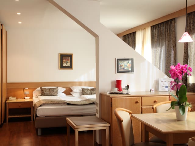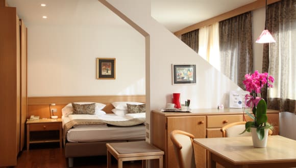 Jede Wohneinheit ist mit einem Badezimmer versehen. Das Badezimmerinventar offeriert Badewanne oder Dusche, Bademantel, Haartrockner, Toilettenartikel und Hausschuhe. In jedes Zimmer ist ein einladender Sitzbereich integriert. Die Zimmerausstattung umfasst eine Minibar, einen Safe sowie einen Schreibtisch. Es erwartet Sie eine Kaffeemaschine. Außerdem vervollständigen ein Radio und ein Fernseher das Inventar. Auf Wunsch sind ebenso schallisolierte Zimmer erhältlich.