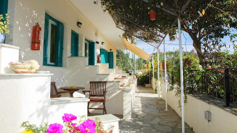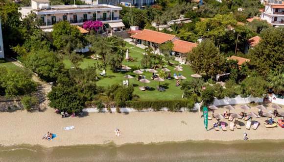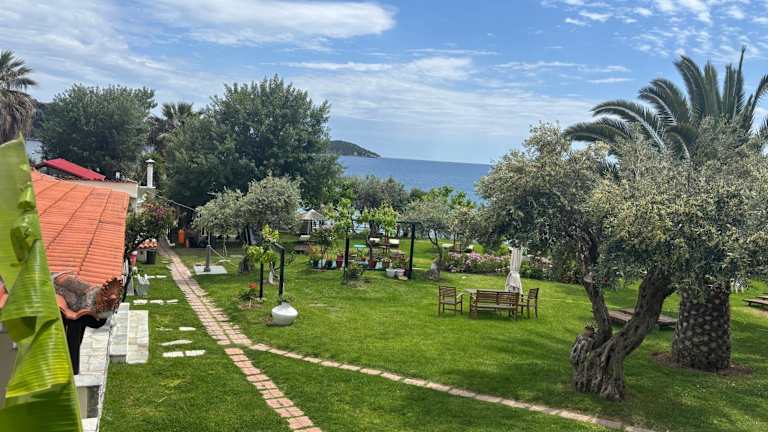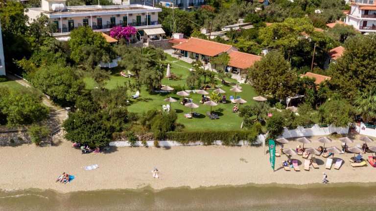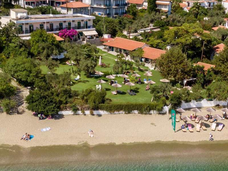 Im Hotel Angeliki Beach können Sie sich im üppigen Garten mit Olivenbäumen entspannen und den Meerblick genießen. Liegestühle stehen Ihnen zur Verfügung.