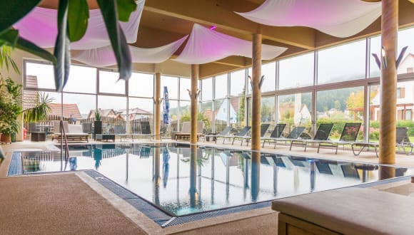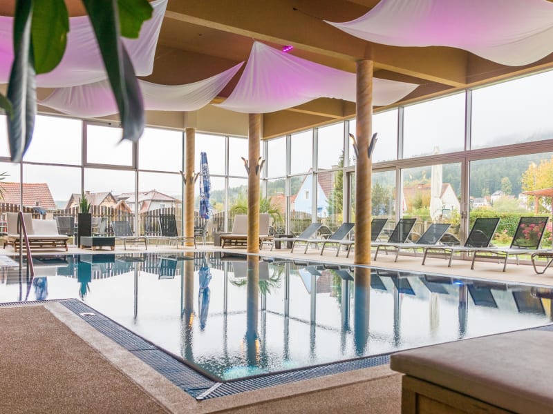 Besonders attraktiv ist der Wellnessbereich mit Hallenbad und 4 verschiedenen Saunen, der den Gäste natürlich kostenfrei zur Verfügung steht.