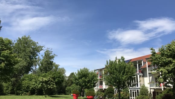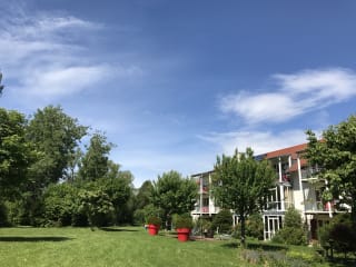 Jede Suite hat ein abgeschlossenes Schlafzimmer mit Doppelbett, ein Badezimmer mit Kosmetikspiegel, Haartrockner und Toilettenartikeln, ein abgetrenntes WC, eine kleine vollständig eingerichtete Küche und ein großes Wohnzimmer mit Tisch und 4 Stühlen, Ausziehcouch mit Tischchen und Ledersessel, 50-Zoll-Sat-TV, Terrasse, Balkon oder Wintergarten zum Park, Fluss und nach Westen. Im direkt angrenzenden Park (6.000 qm) finden Sie Liegestühle, Sitzgruppen, eine Laube, Grillecke mit Grillkohle, dazu ein Fahrradschuppen. Zur Grundausstattung zählt eine Minibar (alles 1 €). Zum standardmäßigen Zimmerinventar gehören ein Bügeleisen, ein Kühlschrank sowie eine Kaffeemaschine. Optional verfügt dieses Hotel über 4 behindertenfreundliche EG-Suiten, auf Wunsch Allergikerbetten und ausschließlich schallisolierte Zimmer.