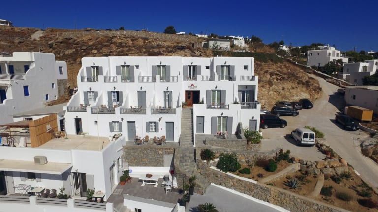 Das Hotel Anna bietet Ihnen eine traditionelle Unterkunft direkt am wunderschönen Sandstrand von Platis Gialos auf Mykonos. Genießen Sie den atemberaubenden Blick auf die Ägäis von Ihrem eigenen Balkon aus. Die klimatisierten Zimmer und Suiten sind komfortabel eingerichtet und verfügen über Annehmlichkeiten wie einen Kühlschrank, einen TV und einen Safe. WLAN steht Ihnen in allen Bereichen kostenlos zur Verfügung. Das Hotel liegt in der Nähe von Restaurants, Bars und dem beliebten Strand Psarrou. Kostenfreie Parkplätze sind ebenfalls vorhanden.