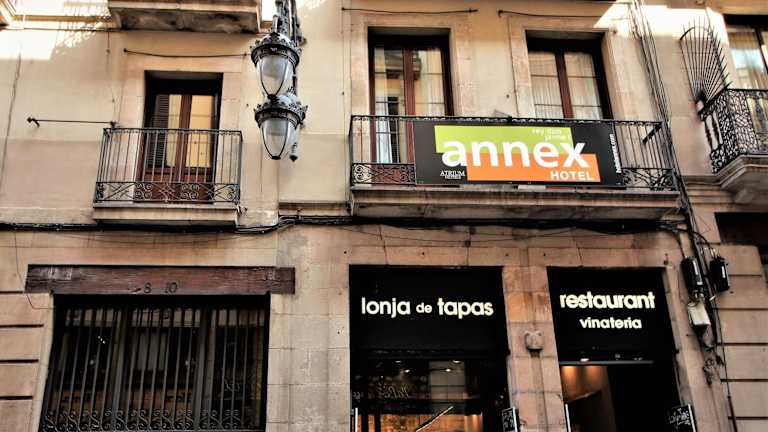 Das Hotel Annex - Rey Don Jaime I liegt im Herzen des Barri Gòtic, dem gotischen Viertel von Barcelona. Der U-Bahnhof Liceu ist nur 3 Gehminuten entfernt, was es Ihnen ermöglicht, die Stadt bequem zu erkunden. In unmittelbarer Nähe des Hotels finden Sie eine Vielzahl von Bars und Tapas-Restaurants, in denen Sie die lokale Küche genießen können. Sehenswürdigkeiten wie die Promenade La Rambla und die Kathedrale von Barcelona sind ebenfalls nur wenige Gehminuten entfernt. Die Plaça de Catalunya erreichen Sie in weniger als 1 km Entfernung.
