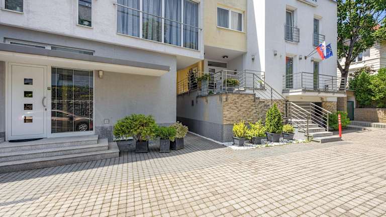Das Hotel liegt in einem ruhigen Wohngebiet von Bratislava, lediglich 500 m von der Burg Bratislava und 800 m von der Dlavin-Burg entfernt. Das historische Stadtzentrum ist in wenigen Gehminuten erreichbar. Der Flughafen Bratislava befindet sich etwa 7 km entfernt, mit Anbindungen an die öffentlichen Verkehrsmittel in nur 50 m Entfernung. Der Hauptbahnhof liegt ca. 1 km weit weg.