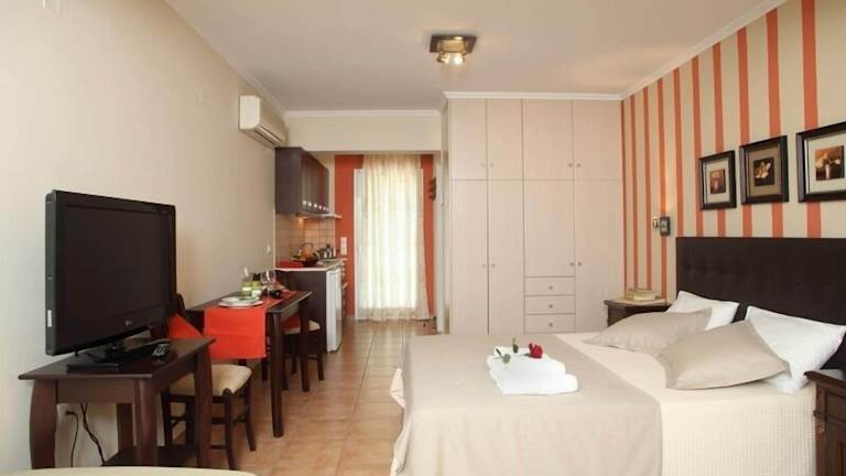 Das Anthias Garden auf Lefkada bietet eine ideale Lage im Herzen eines venezianischen Olivenhains und ist nur 1 km vom Strand von Agios Ioannis entfernt. Hier erwarten Sie komfortable Unterkünfte zur Selbstverpflegung mit kostenfreiem WLAN und einem malerischen Garten. Die gut ausgestatteten Unterkünfte sind klimatisiert und zeichnen sich durch ihre elegante Gestaltung, geflieste Böden und helle Farben aus. Zur Ausstattung gehören eine Küche mit Essbereich und Kühlschrank sowie Sat-TV. Einige Unterkünfte verfügen über einen Balkon mit herrlicher Aussicht. Die 24-Stunden-Rezeption sorgt für Ihren Komfort und auf Anfrage können Sie die Grillmöglichkeiten der Unterkunft nutzen. Das Anthias Garden liegt etwa 17 km von Nydri entfernt und die Stadt Lefkada mit ihren Restaurants, Bars und Supermärkten erreichen Sie nach 1 km. Kostenfreie Parkplätze stehen Ihnen am Hotel zur Verfügung.