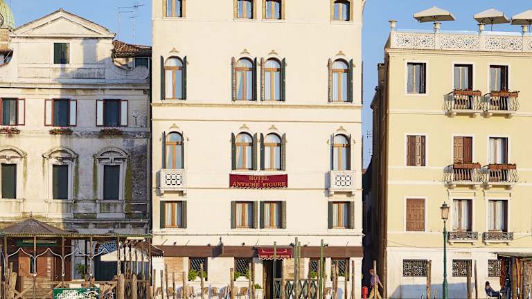 Das Hotel Antiche Figure ist ein charmantes venezianisches Hotel direkt am Canal Grande und gegenüber dem Bahnhof von Venedig. Hier können Sie den traditionellen venezianischen Stil und den Komfort moderner Annehmlichkeiten genießen. Das Hotel bietet ein abwechslungsreiches Frühstücksbuffet, kostenloses WLAN und freundliches mehrsprachiges Personal. Entspannen Sie bei einem Drink im Garden Café und erkunden Sie die Sehenswürdigkeiten von Venedig, die nur einen kurzen Spaziergang entfernt sind.