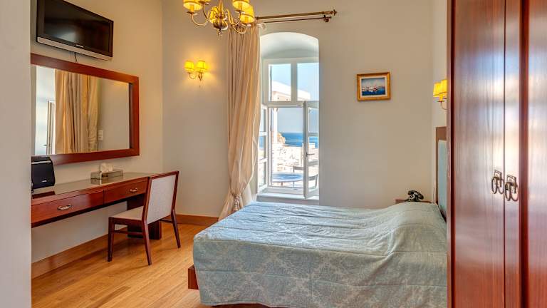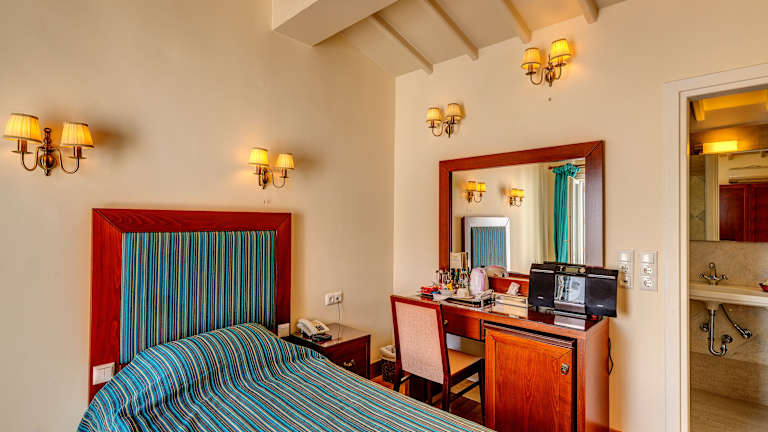 Die Zimmer und Suiten im Apollonion Palace Hotel sind wunderschön im klassischen Stil gestaltet und bieten einen komfortablen und eleganten Rückzugsort. Einige Zimmer verfügen über einen eigenen Whirlpool, in dem Sie sich entspannen können. Genießen Sie den Blick auf die Straßen der Stadt oder das Meer und lassen Sie sich von der charmanten Atmosphäre verzaubern.