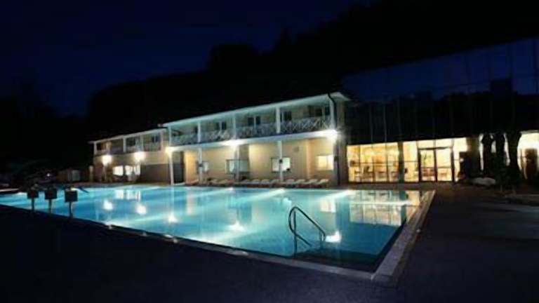 Verbringen Sie einen erholsamen Aufenthalt im Hotel Aqua Roma in Rimske Toplice. Das Hotel bietet eine idyllische Lage inmitten der Natur und verfügt über einen Außenpool mit Wasserrutschen, ein erstklassiges Restaurant und eine gemütliche Bar. Genießen Sie kostenloses WLAN und Parkplätze. Die klimatisierten Zimmer sind komfortabel ausgestattet und einige bieten einen Blick auf den Pool und die Berge. Nutzen Sie die nahe gelegenen Wellnesseinrichtungen und profitieren Sie von den Ermäßigungen in den römischen Bädern. Entdecken Sie die Umgebung mit den öffentlichen Verkehrsmitteln, die bequem zu erreichen sind. Der Flughafen Ljubljana ist 80 km entfernt.