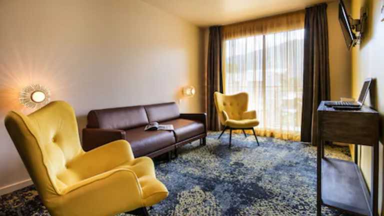 Das Hotel verfügt über ein Restaurant und einen Speiseraum, in dem ein leckeres Frühstück serviert wird, um den Tag energiegeladen zu beginnen. Das Restaurant Le Kubix bietet traditionelle französische und internationale Küche mit regionalen Spezialitäten. Die Hotelbar lädt zum Verweilen bei einem Drink ein.