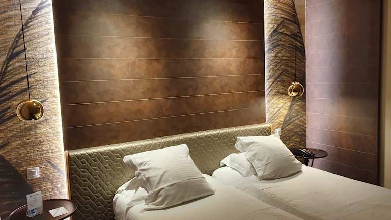 Das Hotel bietet sowohl einen Innen- als auch einen Außenpool, die ideal für regelmäßiges Aquatraining und aktive Erholung sind. Auf der Terrasse können Sie das schöne Wetter genießen. Der Wellnessbereich des Hotels umfasst einen Whirlpool, eine Sauna, ein Dampfbad und ein Spa, in dem Sie sich verwöhnen lassen können. Es gibt auch einen Fitnessraum, in dem Sie trainieren können. Das Hotel bietet auch Golfkurse gegen Gebühr an.
