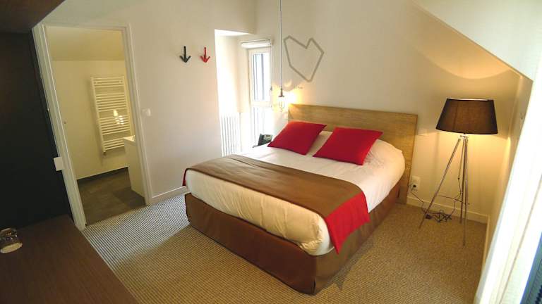 Die Zimmer im Hôtel Ar Iniz sind elegant eingerichtet und bieten allen Komfort, den Sie für einen angenehmen Aufenthalt benötigen. Jedes Zimmer verfügt über einen Flachbild-TV, ein Telefon und einen Safe. Das Badezimmer ist mit einem Haartrockner ausgestattet. Das Hotel-Restaurant AR INIZ besteht aus zwei Gebäuden. Am Meer gelegen, bietet das authentische Gebäude entlang des Strandes 9 charmante Zimmer mit Meerblick auf verschiedenen Etagen und gemütliche Zimmer mit Blick auf den Garten, die mit einem Aufzug erreichbar sind. Auf der Südseite des Innenhofs bietet ein moderneres Gebäude Zimmer mit separatem Zugang im Erdgeschoss oder über die Treppe im Obergeschoss. Alle Zimmer sind im maritimen und „industriellen” Stil eingerichtet, hell, warm, gut beleuchtet und gut schallisoliert. Sie sind mit hochwertigen Betten und den notwendigen Annehmlichkeiten für einen Aufenthalt am Meer ausgestattet: Flachbildfernseher, kostenloses WLAN, Badezimmer mit Dusche und separater Toilette, Kleiderschrank und Safe. Zwei Zimmer sind für Menschen mit eingeschränkter Mobilität geeignet, zwei sind für Familienaufenthalte miteinander verbunden. Es stehen nur zwei Zimmergrößen zur Verfügung: 13,5 m² und 16,8 m².