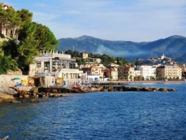 Das Hotel Arc en Ciel liegt direkt am Meer und bietet eine herrliche Aussicht auf die Bucht von Diano Marina. Umgeben von Pinien und Palmen können Sie die Ruhe und Schönheit der Umgebung genießen. In der Nähe finden Sie auch den Lido Sant'Anna, der weitere Möglichkeiten zur Erholung bietet.