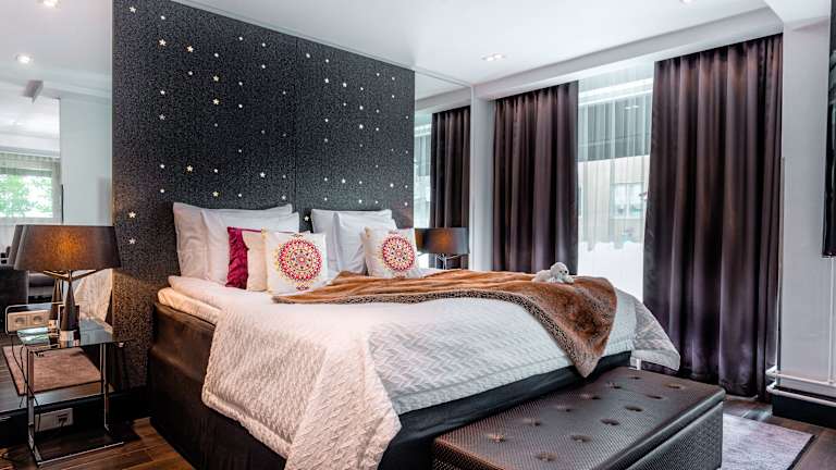 Die Zimmer im Arctic Light Hotel sind individuell gestaltet, hell und sehr modern eingerichtet. Zur Ausstattung gehören ein Flachbild-TV, eine Minibar und Tee- und Kaffeezubehör. Bademäntel und Hausschuhe sorgen für zusätzlichen Komfort. Einige Zimmer verfügen über eine eigene Küchenzeile. Jedes Zimmer hat ein eigenes Badezimmer mit einer Badewanne oder Dusche und einem Haartrockner.