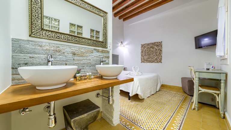 Die Zimmer im Hotel Argantonio sind individuell gestaltet und tragen den Namen einer der verschiedenen Kulturen, die die Stadt geprägt haben. Jedes Zimmer ist einzigartig und bietet eine charmante Atmosphäre. Die Innenbereiche des Hotels sind sorgfältig gestaltet und verbinden traditionelle Elemente wie handgeschnitzte Bögen im marokkanischen Stil und gestapelte Mosaikstrukturen mit modernen Annehmlichkeiten wie WLAN und Plasma-TVs. Hier können Sie sich in gemütlicher und komfortabler Umgebung entspannen.