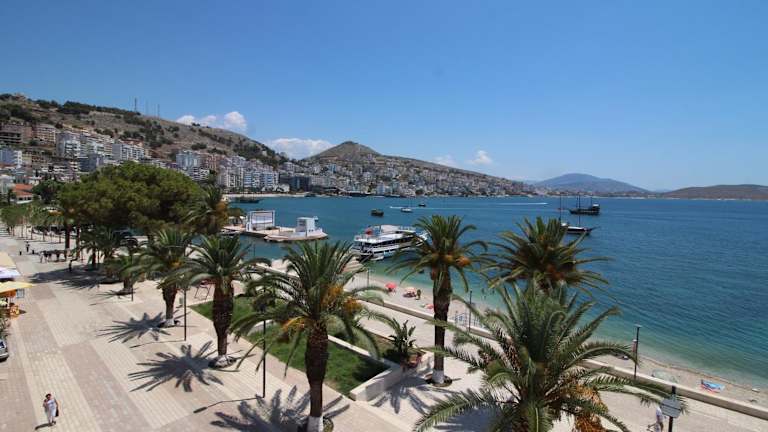 Das Hotel befindet sich in Saranda, in unmittelbarem Blick auf den Strand und in der Nähe mehrerer bekannter Sehenswürdigkeiten. Der Strand Saranda-Stadt ist etwa 300 m entfernt, während der Hauptstrand Sarande rund 700 m entfernt liegt.