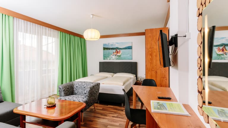 Unser heimeliges Hotel liegt ganz idyllisch am Waldrand, nur 3 Gehminuten vom Klopeiner See, der Seepromenade und dem Ortszentrum von St. Kanzian entfernt. Durch die ruhige, verkehrsfreie und kindersichere Lage können Sie sich hier richtig entspannen, die Seele baumeln lassen und Ihren Urlaub bewusst genießen.