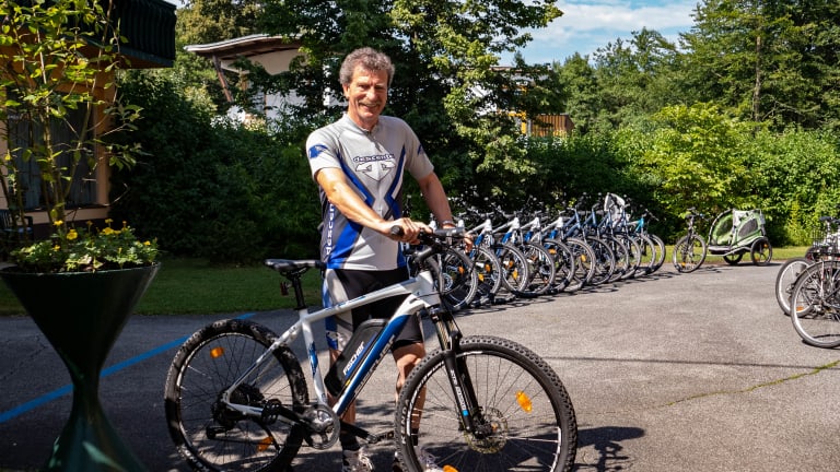Jedem Gast sein eigenes Bike - pro gebuchtem Zimmer stehen 2 E-Bikes für die Dauer die Aufenthalts gratis zur Verfügung!!! Plus 1 E-Bike für Kinder (ab 10 Jahre m. Radführerschein, Rahmengröße 38 cm) während des Aufenthalts in der Zeit vom 1. Mai bis 15. Juli und vom 1.9.-30.9.!! Anstelle der E-Bikes können Sie sich auch einen E-Scooter (mit Sitz) erhalten. Wenn Sie unser E-Mobiltäts-Angebot nicht annehmen wollen, ist ab der 4. Übernachtung eine Massage (25 Min) inkludiert. Wir haben einen eigenen Fahrradshop mit kompetentem Reparaturservice, tollen Leihrädern und Tourenberatung. Unser Bike-Guide führt regelmäßig Touren in die malerische Landschaft Südkärntens durch.