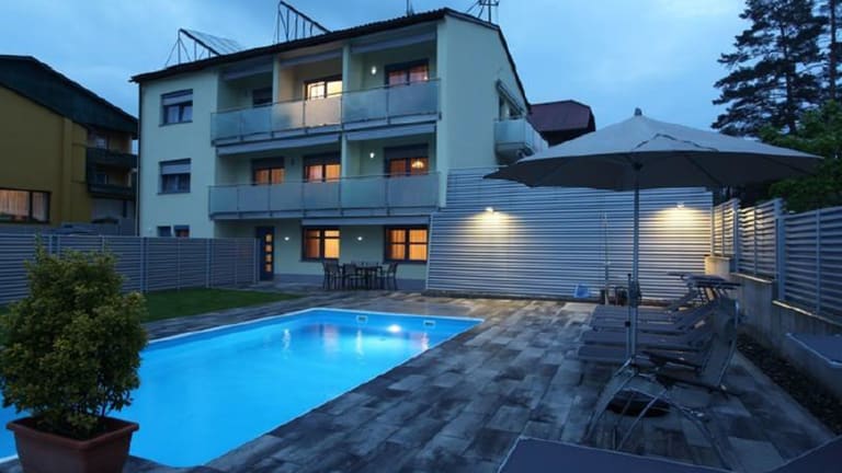 Unser 2018 renoviertes Haus bietet Ihnen schöne Zimmer, auch Familieneinheiten sowie Studios mit Kochnische und neue Appartements. Alle Zimmer sind mit Dusche & WC, Balkon, Kühlschrank, Wasserkocher, Selbstwähltelefon, Radio & Sat-TV, Wireless-LAN (kostenlos), Fön und automatischem Weckruf ausgestattet. Familieneinheiten bestehen aus Elternzimmer mit angrenzendem Kinderzimmer. Für Gäste des Appartementhauses gibt es einen beheizten Pool und eine schöne Liegewiese mit Komfortliegen. Auch Haustiere sind im Hotel Ariell herzlich willkommen.