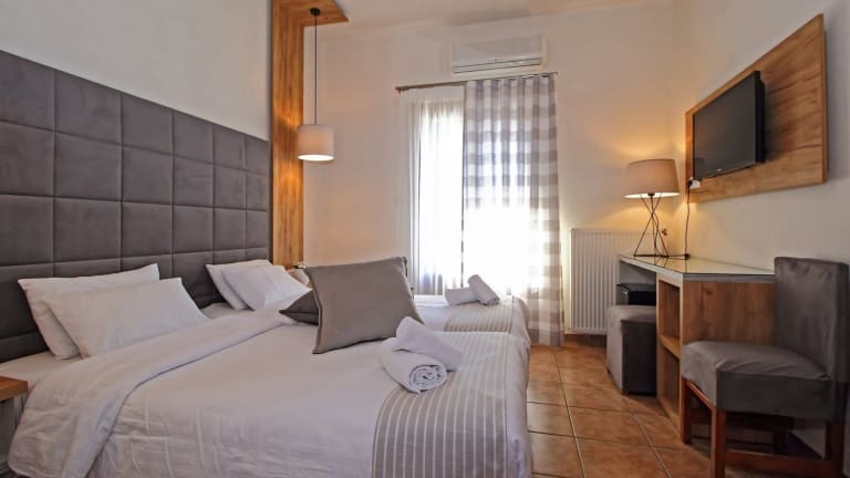 Das Arion Hotel bietet 23 klimatisierte Zimmer, die traditionell gestaltet sind und eine gemütliche Atmosphäre bieten. Jedes Zimmer verfügt über ein eigenes Bad mit einem Haartrockner und einige Zimmer bieten einen Balkon mit herrlichem Berg- oder Meerblick. Für zusätzlichen Komfort gibt es auch kostenfreies WLAN in den Zimmern.