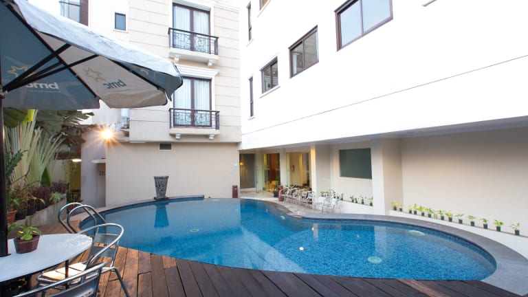 Das Hotel Asmila Boutique in Bandung bietet eine zentrale Lage und ist umgeben von zahlreichen Einkaufs- und Restaurantmöglichkeiten. Der internationale Flughafen Husein Sastranegara ist ebenfalls in der Nähe. Das Hotel verfügt über 37 Zimmer, ein Restaurant mit Café und einen schönen Außenpool. Die Zimmer sind komfortabel ausgestattet und bieten Annehmlichkeiten wie Klimaanlage, Safe, Minibar und kostenfreies WLAN. Das Hotel bietet auch Tagungseinrichtungen, einen Fitnessraum und einen Wellnessbereich mit Massagen.