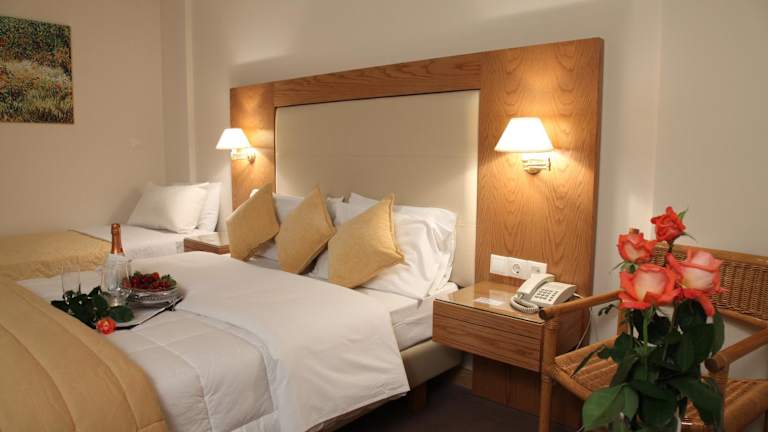 Die Zimmer im Hotel Aspassia sind elegant eingerichtet und in sanften Farbtönen gehalten. Jedes Zimmer verfügt über Annehmlichkeiten wie eine Klimaanlage, kostenfreies WLAN und einen Balkon, auf dem Sie die frische Luft und die Aussicht genießen können. Zur weiteren Ausstattung gehören ein TV und ein Minikühlschrank für zusätzlichen Komfort. Die Badezimmer sind mit einer Badewanne und einem Haartrockner ausgestattet.