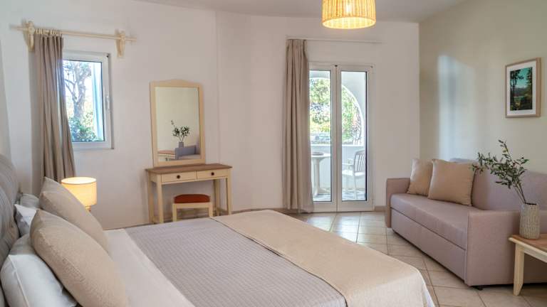 Die Zimmer im Asteras Paradise sind komfortabel und bieten eine herrliche Aussicht auf das Meer, den Pool oder den Garten. Sie sind klimatisiert und verfügen über einen Balkon. Zur Ausstattung gehören ein TV, ein Kühlschrank und ein eigenes Badezimmer mit Dusche und Badewanne. Einige Zimmer verfügen auch über eine Whirlpool-Badewanne.