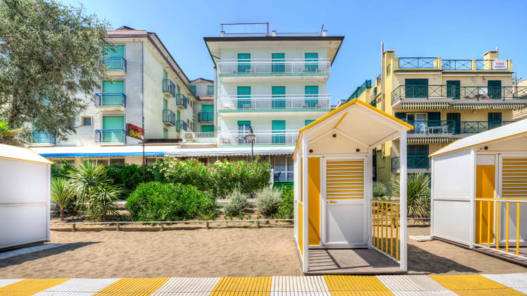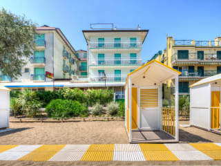 Verbringen Sie einen erholsamen Urlaub im Hotel Astoria in Caorle. Das Hotel liegt direkt am Strand und bietet eine ruhige und dennoch zentrale Lage. Genießen Sie den wunderschönen Meerblick im Restaurant und entspannen Sie am eigenen Strand mit kostenfreien Umkleidekabinen, Sonnenschirmen und Liegestühlen. Nutzen Sie auch die Möglichkeit, Fahrräder auszuleihen, um die Umgebung zu erkunden. Das Hotel ist voll klimatisiert und verfügt über eine gemütliche Bar mit einer großen Lounge und einem TV-Zimmer. Buchen Sie im Voraus Halb- oder Vollpension, um Ihren Aufenthalt noch angenehmer zu gestalten.