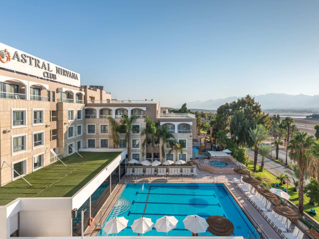 Das Hotel Astral Nirvana Club bietet eine Vielzahl von Sport- und Freizeitmöglichkeiten für die Gäste. Der große Außenpool mit Wasserrutschen ist ideal für aktive Erholung und bietet Spaß für Jung und Alt. Auf der Sonnenterrasse können die Gäste die warme Sonne genießen und sich entspannen. Das Hotel verfügt auch über ein Spielzimmer für Unterhaltung und einen Miniclub, wo Kinder liebevoll betreut werden.