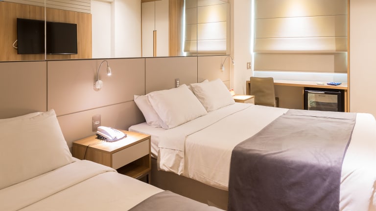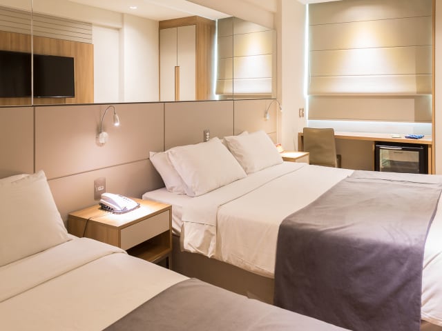 Die 150 klimatisierten Zimmer im Hotel Atlântico Travel sind komfortabel eingerichtet und verfügen über Annehmlichkeiten wie eine Minibar und einen Flachbildfernseher. Kostenloses WLAN steht zur Verfügung und die Badezimmer sind mit Duschen, kostenlosen Toilettenartikeln und Haartrocknern ausgestattet. Telefon, Safe und Schreibtisch sind ebenfalls vorhanden.