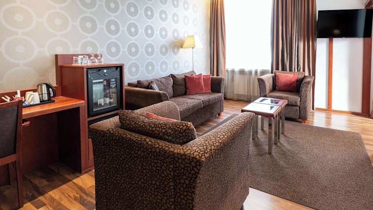 Das Hotel bietet 131 Nichtraucherzimmer auf 5 Etagen. Die Zimmer sind modern eingerichtet und verfügen über eine Klimaanlage, einen Flachbild-TV, eine Minibar und Bügeleisen/-brett. Einige Zimmer verfügen über eine private Sauna und einen Balkon. Kostenloses WLAN ist in allen Zimmern verfügbar.