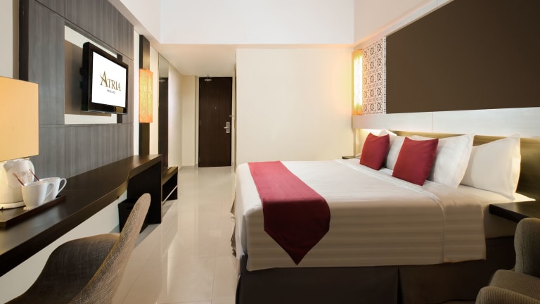 Die 144 Zimmer im Atria Hotel Magelang sind gut eingerichtet und bieten modernen Komfort. Jedes Zimmer verfügt über eine Klimaanlage, einen Flachbild-Kabel-TV, einen Sitzbereich, einen Arbeitsbereich, eine Minibar und Tee- und Kaffeezubehör. Die Badezimmer sind mit einer Dusche, kostenfreien Pflegeprodukten und Hausschuhen ausgestattet. Rollstuhlgerechte Zimmer sind ebenfalls verfügbar.