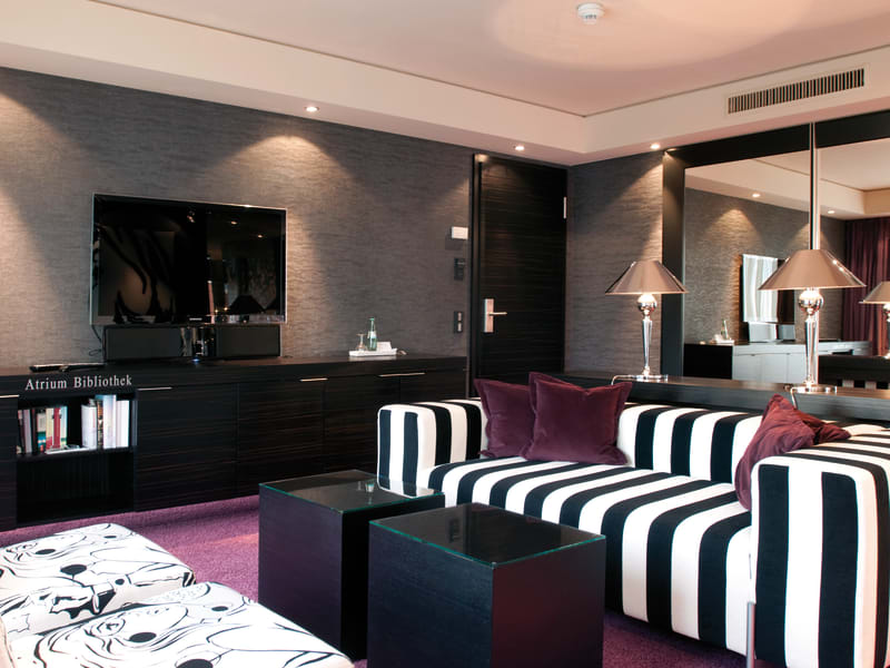 Kommen Sie zur Ruhe – oder seinen Sie aktiv Das Atrium Hotel Mainz verfügt über 150 exklusiv eingerichtete und gestaltete Zimmer und Suiten. Komfort und Eleganz gepaart mit einem Hauch von Luxus machen jeden Aufenthalt wohltuend und einzigartig, denn perfektes Arbeiten hat viel mit einem perfekten Umfeld zu tun. Deshalb sind alle Zimmer mit einem großzügigen Arbeitsplatz, Digitaltelefon, synchronem Highspeed-Internet via LAN oder W-LAN, hochwertigem Flachbildschirm-Fernseher mit internationalen Programmen, Pay-TV und kostenlosem Sky-Sport, iPod-Dockingstation, hochwertigen Treca-Matratzen, Minibar, kostenloser Kaffeebar, Zimmersafe, Bügelstation und – einmalig in Deutschland – mit der Atrium-Bibliothek ausgestattet. In allen Bädern finden sich Haartrockner, Kosmetikspiegel, Bademäntel und Personenwaage.