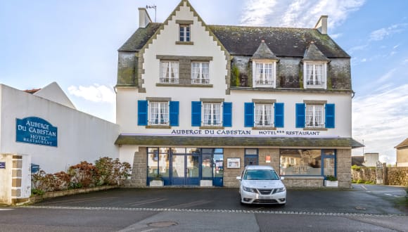 Willkommen im Hotel Auberge du Cabestan Audierne *** Ein drei Sternen Familienhotel mit Restaurant, mit freundlichem bretonischem Ambiente, nicht weit vom malerischen Hafen von Audierne, nur 1,5 Km von wunderschönen Sandstränden entfernt und 12 km vom Pointe du Raz. Das Hotel bietet Ihnen komfortable Zimmer mit Blick auf den Hotelgarten oder die antike Kirche von Esquibien (16 Jahrh.) Im Restaurant bieten wir täglich ein Fruhstücksbuffet. Abends können Sie frische Meeresfrüchte, Fisch, Fleischgerichte und Gemüse der Region genießen. L'Auberge du Cabestan ist vom 4. April bis zum 12. Oktober 2022 geöffnet