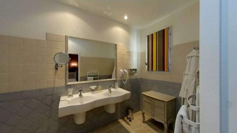 Das Hotel bietet ein Restaurant mit Terrasse, in dem die Gäste eine breite Auswahl an provenzalischen Gerichten genießen können. Ein Frühstück wird jeden Morgen serviert und auf Anfrage auch auf das Zimmer gebracht. Die Bar des Hotels lädt zum Verweilen ein und bietet eine gemütliche Atmosphäre mit einem Kamin aus dem 14. Jahrhundert.
