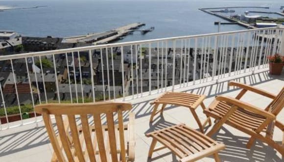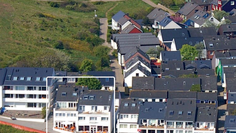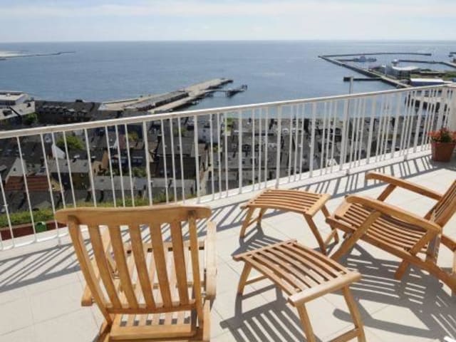 Das Hotel liegt erhöht auf der Nordseeinsel Helgoland, etwa 15 Gehminuten vom Hafen entfernt.