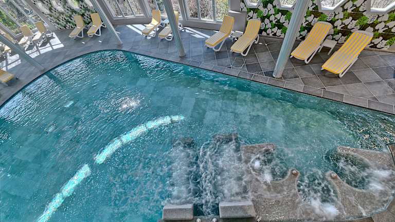 Hotel & Services Hoteleigener Parkplatz Ein Autostellplatz im Garage kann für € 6,00 pro Tag reserviert werden Fahrrad-Verleih Gratis WLAN im gesamten Hotel Fitness-Parcours im Hotelpark Unterhaltung Wir veranstalten Einladungen zum Aperitif, Candle-Light-Dinner, Modeschauen, Piano Bar, musikalische Abende und Konzerte. Thermalbereich Der Eintritt zum gesamten Thermalbereich ist im Übernachtungspreis oder den Paketen mit Übernachtung inbegriffen. Der Thermalbereich ist täglich von 8.30 Uhr bis 23.00 Uhr geöffnet. Ihnen stehen 3 Panorama-Thermalschwimmbecken zu Verfügung: Ein Innenbecken und zwei Außenbecken mit unterschiedlichen Temperaturen und Unterwassermassage; eine finnische Sauna und eine Emotionsdusche befinden sich angrenzend an das Innenschwimmbecken. Bademantel und Frotteehandtuch für den Schwimmbadbereich und Pantoffeln finden Sie in Ihrem Zimmer vor. Eine Terrasse mit Liegen und Sonnenschirmen umgibt das Außenbecken; auch am Innenbecken gibt es zahlreiche Liegen. Von den Schwimmbecken kann auch die Sonnenterrasse erreicht werden. Im Erdgeschoss befindet sich das Dampfbad mit Thermaldämpfen.