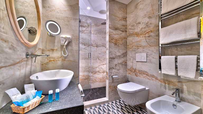 Unser Hotel Terme Augustus in Montegrotto Terme bietet seinen Gästen auf 11 Etagen insgesamt 124 Zimmer der unterschiedlichsten Kategorien, von den einfachen Standard-Zimmern über Comfort- und Superior-Zimmer bis zu den luxuriösen Junior Suites und Suites. Die klassische und nüchterne Einrichtung mit venezianischen Elementen schafft eine angenehme Atmosphäre. Vor allem von den Zimmern in den oberen Etagen aus hat man einen wundervollen Ausblick! Alle Zimmer sind ausgestattet mit: Balkon Bad mit Badewanne oder Dusche Telefon mit Durchwahl Minibar Satelliten-Fernsehen mit internationalen Programmen Klimaanlage Schließfach
