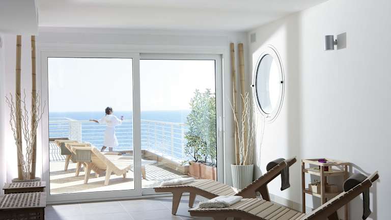 Das Frühstücksbuffet im Hotel Aurora wird auf der Terrasse mit Meerblick serviert. Im À-la-carte-Restaurant haben Sie eine große Auswahl an Vor- und Hauptspeisen sowie Salate und Obstbuffets.
