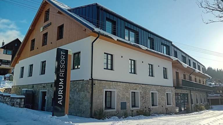 Das Hotel Aurum Černý Důl liegt in Rudník u Vrchlabí, nur wenige Schritte vom Nationalpark Riesengebirge entfernt. Es befindet sich in der Nähe von Skiliften und bietet somit eine großartige Lage für Skifahrer und Snowboarder. Die Umgebung bietet auch eine Vielzahl von Wander- und Radwegen für Naturliebhaber.